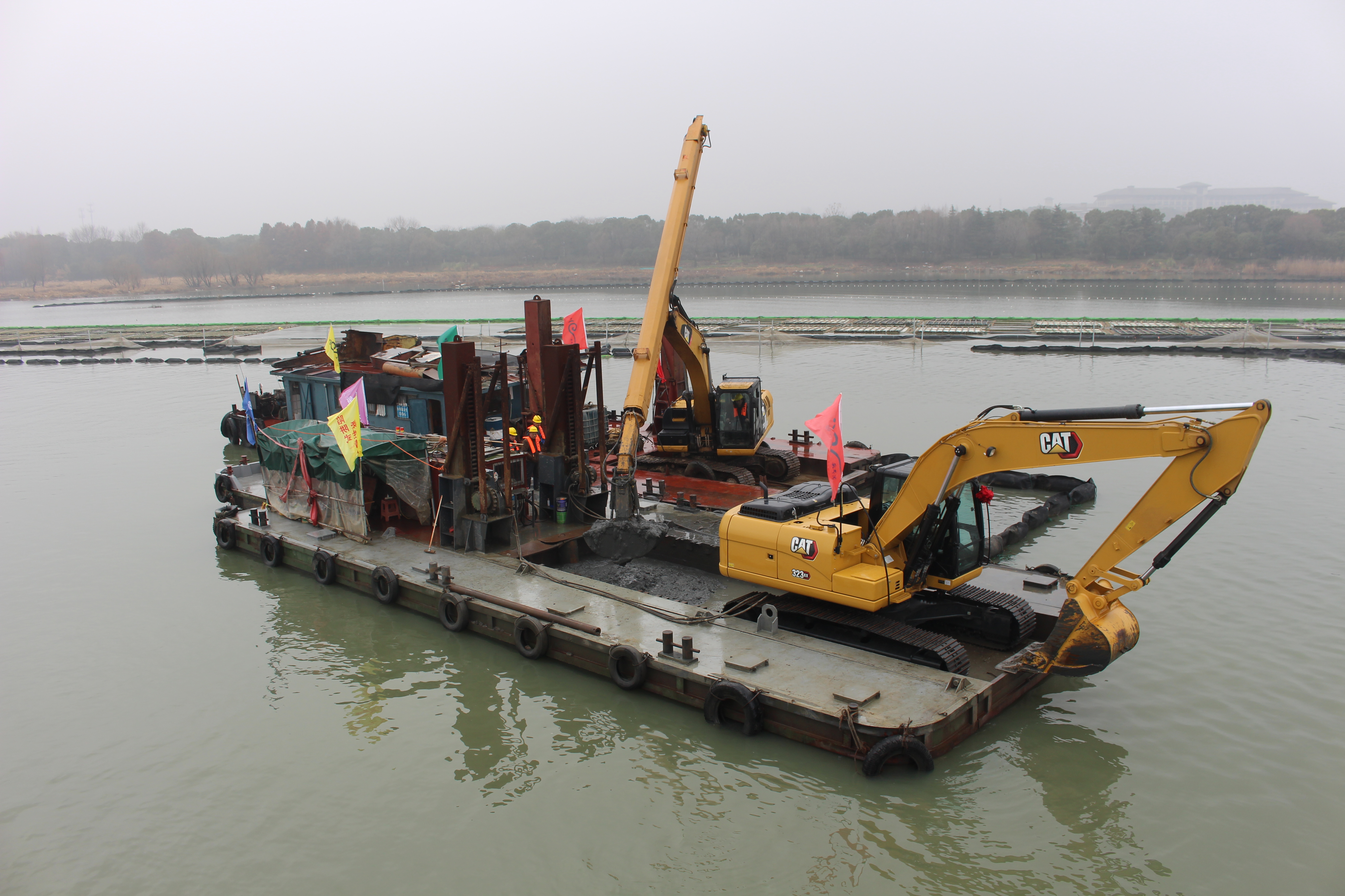 在太湖錦園“陷阱式”整裝成套技術(shù)示范工程現(xiàn)場,柔性清淤事業(yè)部總經(jīng)理奚煒介紹了該項(xiàng)目的技術(shù)路線、工藝原理、成套設(shè)備、技術(shù)優(yōu)勢等基本情況,并由現(xiàn)場運(yùn)行人員操作演示了運(yùn)行流程和出泥效果。此外,柔性清淤事業(yè)部也已在云南星云湖、安徽巢湖相繼建成技術(shù)示范工程并已良好運(yùn)行,清淤效果廣受好評(píng)。該技術(shù)工藝路線為“底泥勘察—收集設(shè)備定位、布設(shè)—輔助推泥—底泥清出—轉(zhuǎn)運(yùn)上岸—資源利用”。底泥收集設(shè)備布設(shè)于高污染底泥最易匯集的位置,收集設(shè)備在高污染底泥層以下,且頂部與高污染底泥底部界面持平,可以借助湖流、風(fēng)生流等自然力量,必要時(shí)適當(dāng)輔助人工的柔性推泥措施收集高污染的浮泥、流泥,對(duì)水體擾動(dòng)較其他清淤技術(shù)小;收集進(jìn)入井中的高污染底泥,在重力作用下實(shí)現(xiàn)脫水減容,清出的淤泥體積大幅降低,后續(xù)處置場地占用少,清出的淤泥含水率低,不需要添加藥劑固化,為后續(xù)資源化利用提供了便利的條件。